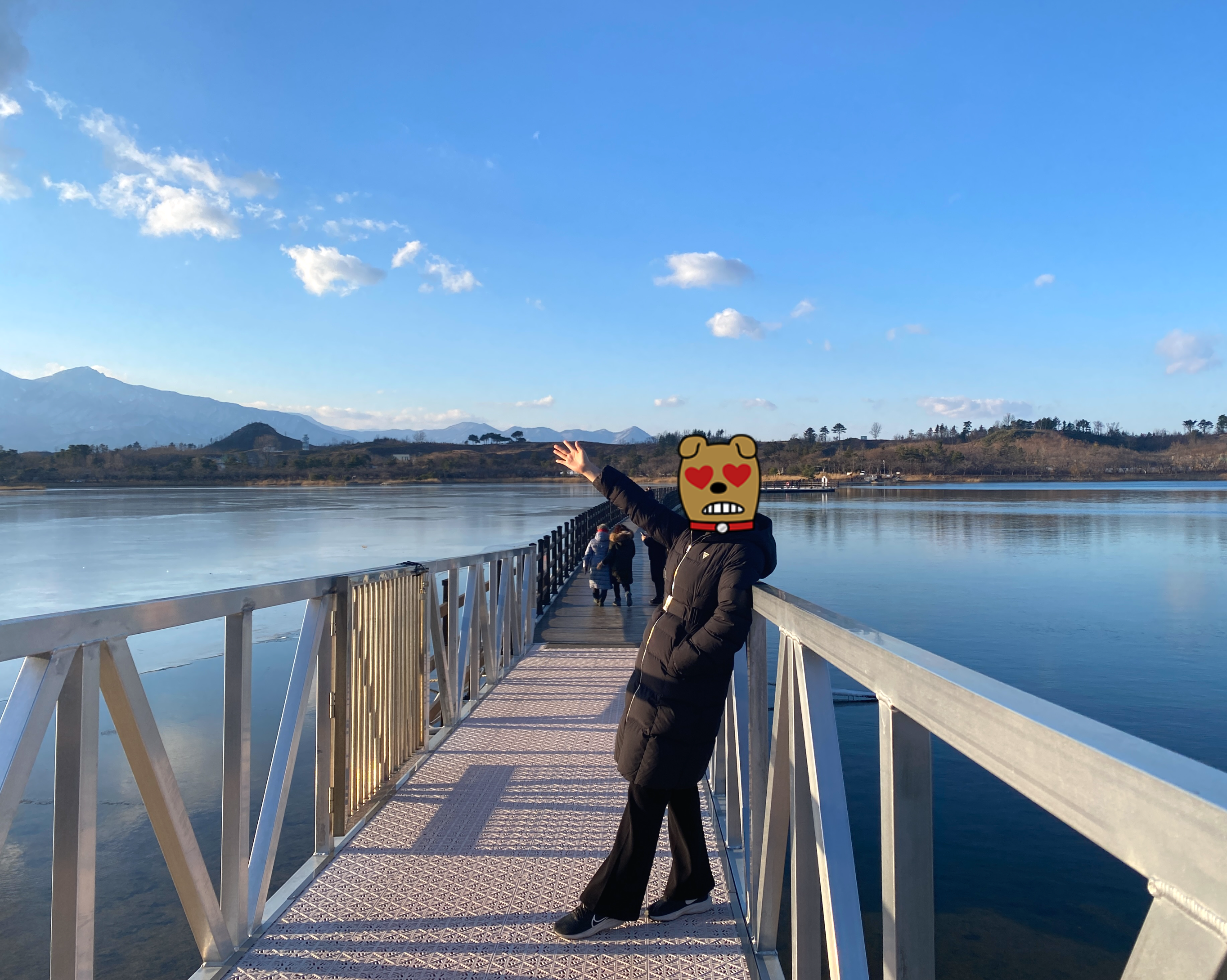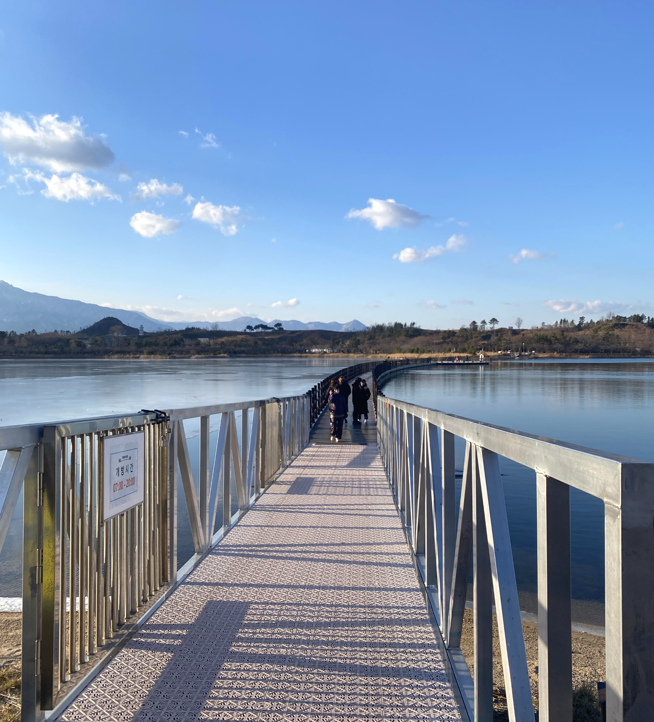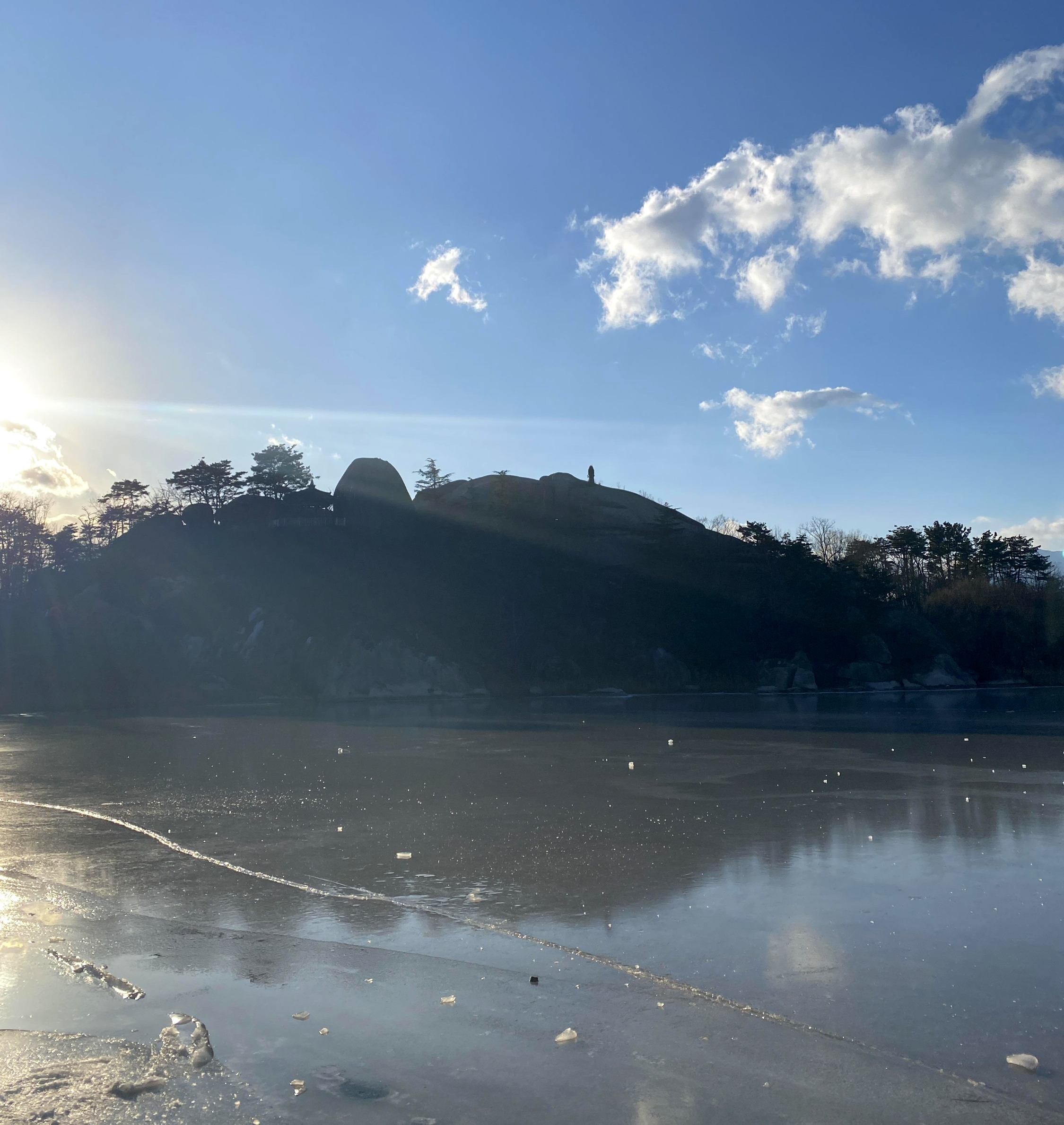 한겨울 영랑호 한쪽 끝이 얼고, 고요한 분위기의 겨울 영랑호 모습입니다. 찬 바람이 매서웠지만 출렁다리에 서서 양 쪽으로 펼쳐진 영랑호의 풍경을 바라보니 참 아름답더라고요! 속초 여행 가시면 꼭 한번 들려보세요~