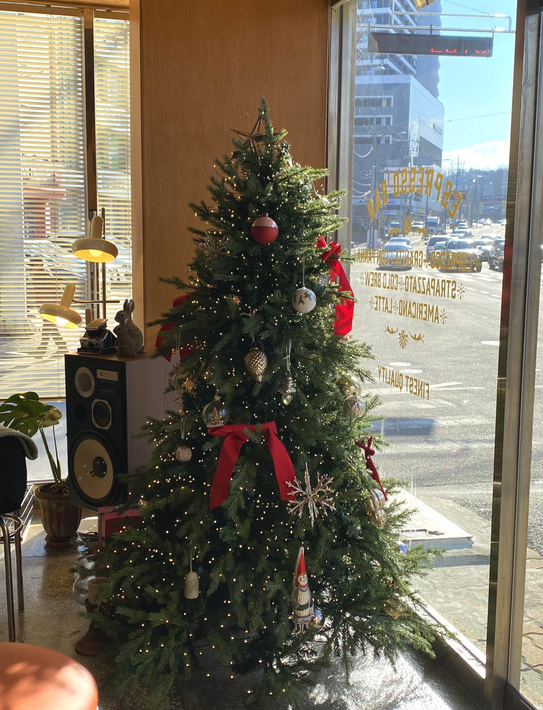 한 쪽에는 바 테이블이 있고, 반대편에 2인 4인 테이블이 몇 개 놓여져있어요. 매장이 크지 않았지만 곳곳에 배치된 초록 식물들과 따뜻한 조명 덕분에 내부는 정말 아늑하고, 사진 찍기에도 딱 좋더라고요. 작은 공간임에도 불구하고, 매우 세련되고 색감이 독특하게 꾸며져 있어 눈이 즐거웠어요.