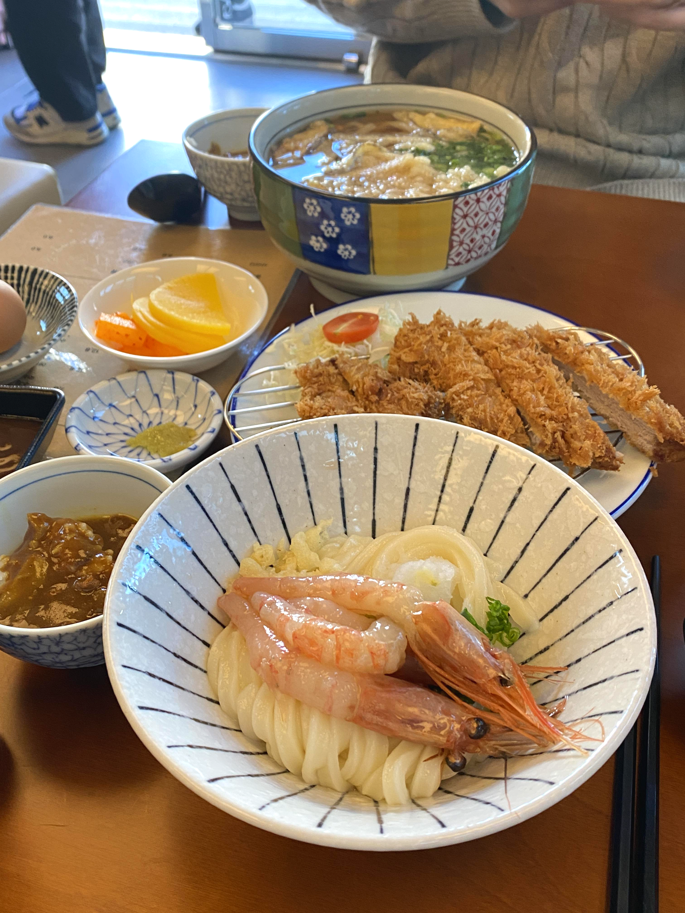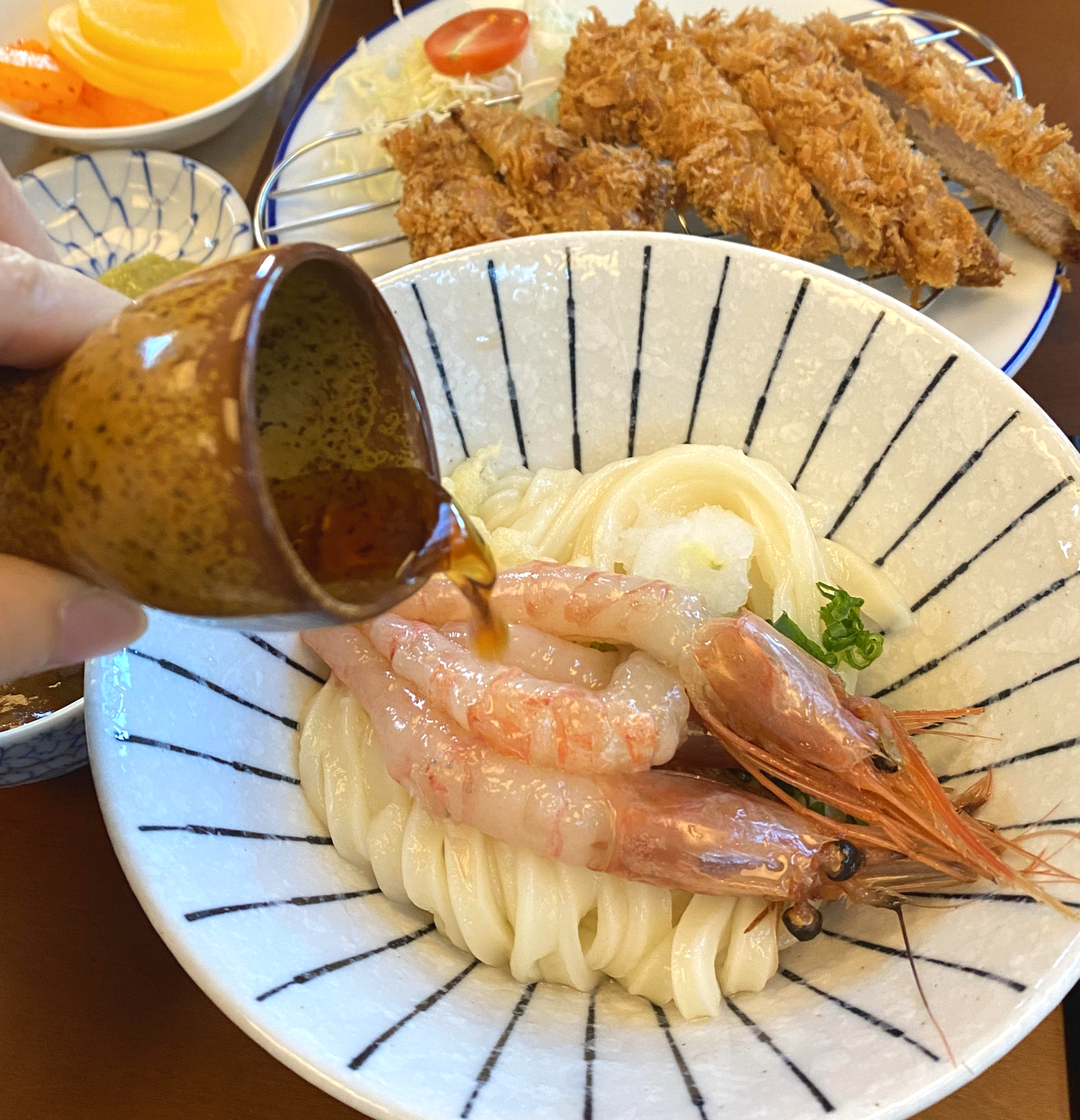 단새우붓가케(12800원), 수제돈까스(9800원), 온우동(7800원), 수란(1000원)추가 을 주문했어요. 남편이 우동당을 너무 좋아해서 한 번 가면 늘 메뉴 3개씩 주문하게 되네요!
