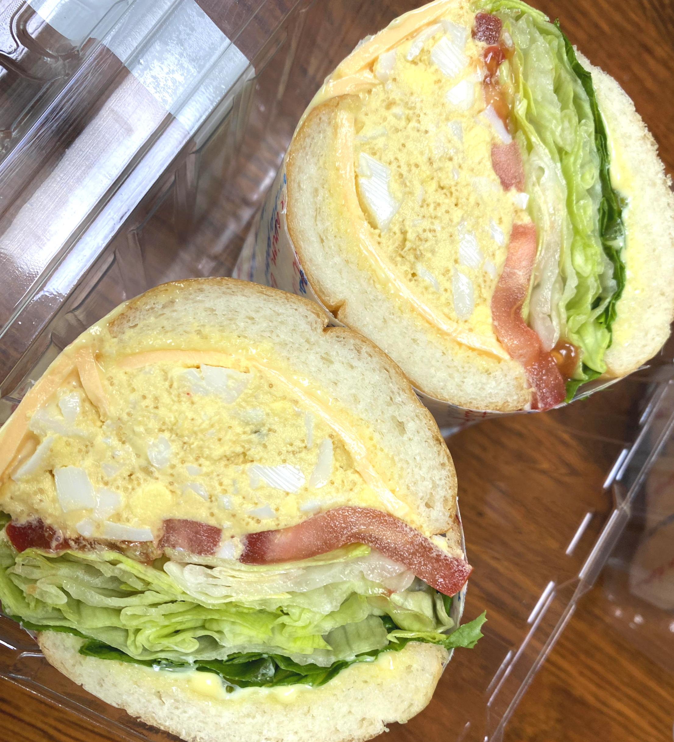 저희 모녀의 입 맛을 사로잡은 에그명란샌드위치입니다. 양상추, 토마토, 명란에그마요, 치즈가 들어가 있어요. 삶은 계란이 가득 들어가 있고, 명란이 포인트로 들어가 있었는데요. 계란의 부드러움과 명란의 짭짤함이 만나 맛있더라구요!