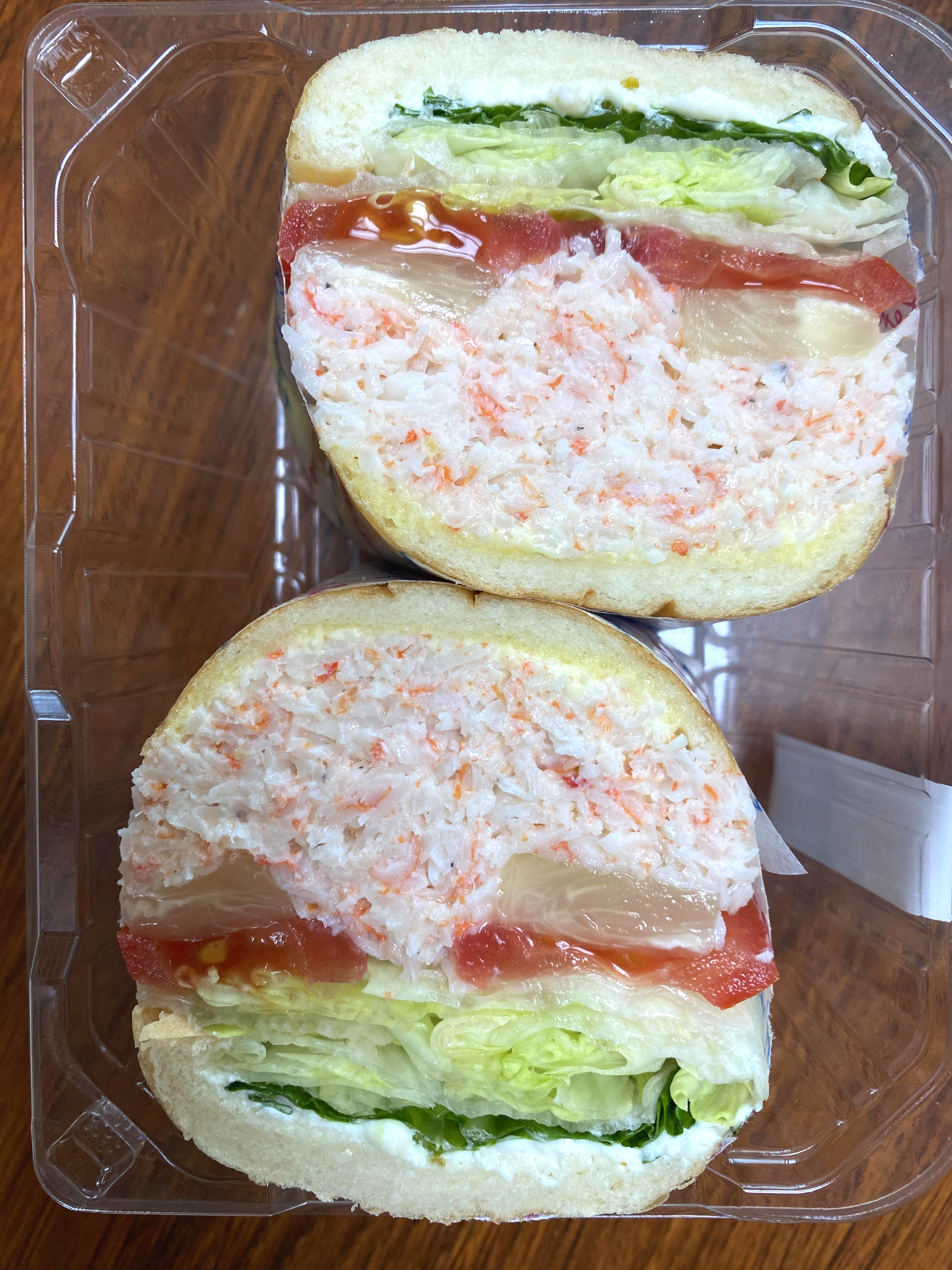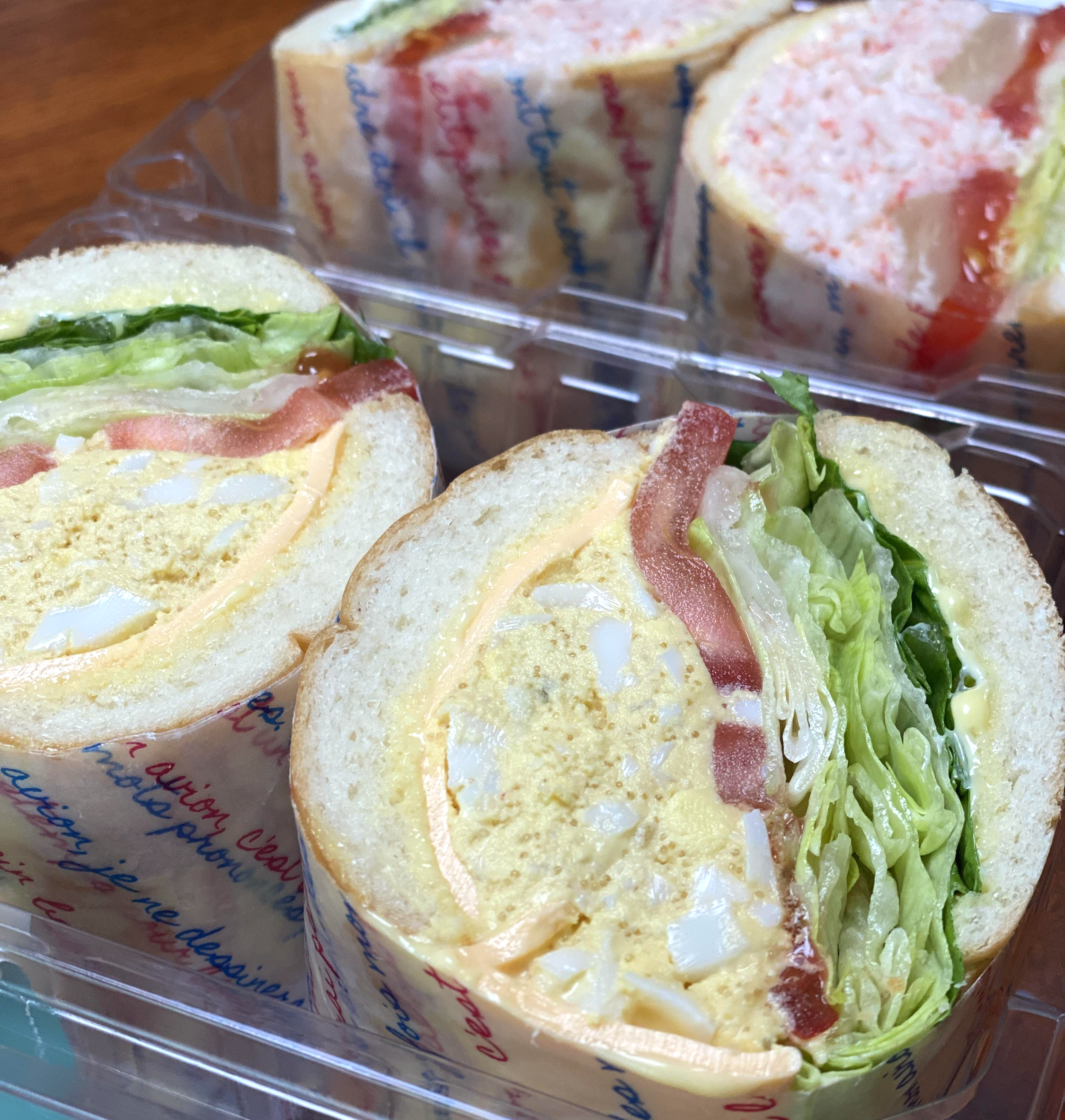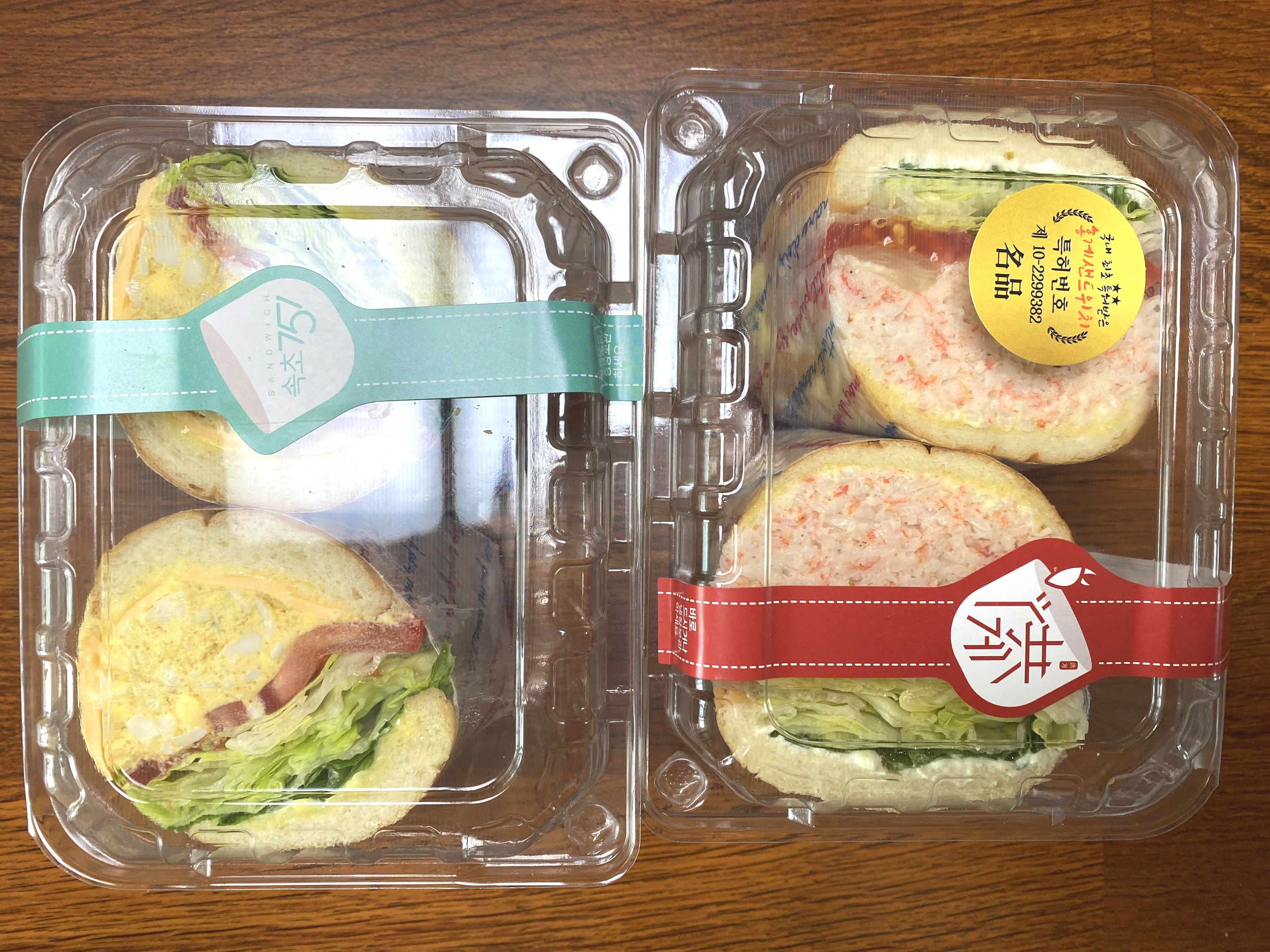 왼쪽이 에그명란샌드위치, 오른쪽이 홍게샌드위치입니다.