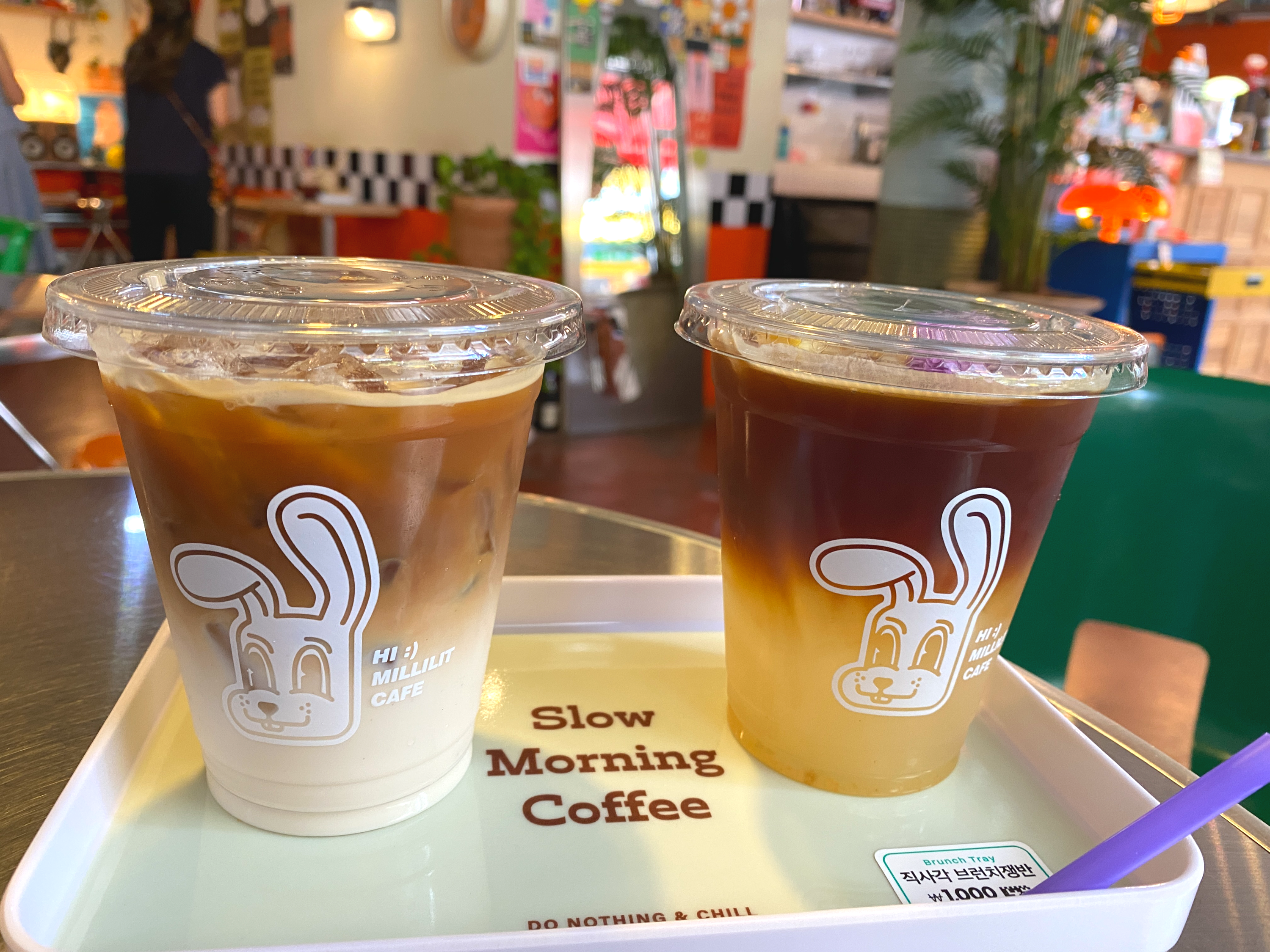 MILLILIT CAFE의 시그니처 커피인 오렌지 아메리카노와 라떼를 주문했어요!