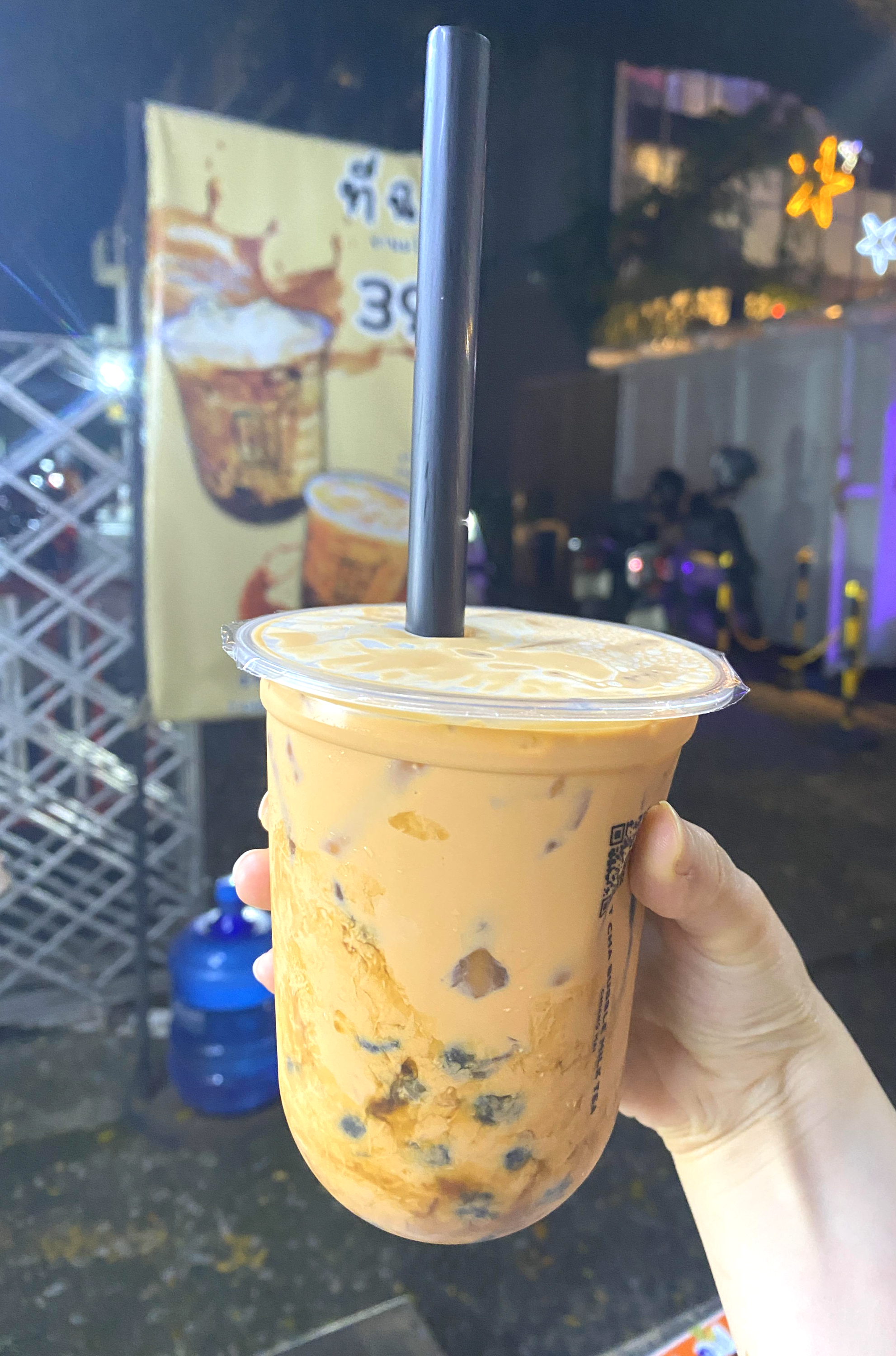 흑당밀크티 덜 달게로 주문했는데 버블이 들어있음에도 39바트예요! 정말 가성비가 좋죠~ 한국돈으로 2천원대에 맛있는 흑당밀크티를 먹을 수 있답니다. 가성비 좋아서 한 번 방문해보시는 걸 추천드려요.